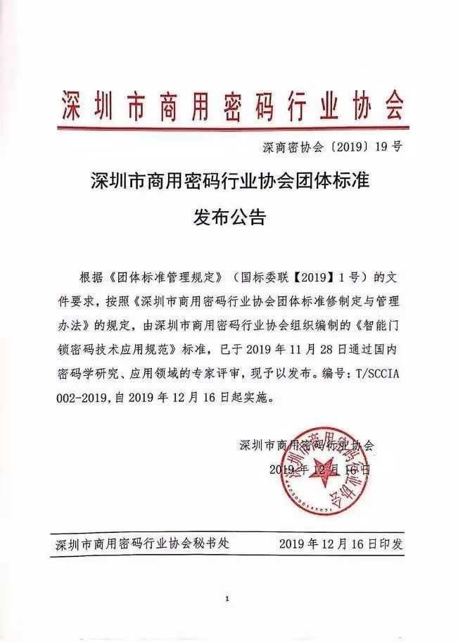近日,由深圳市羅漫斯智能家居有限公司參與編訂的《智能門鎖密碼技術應用規范》于12月16日開始正式實施。該標準規范了智能門鎖行業密碼應用流程,給出了國產商用密碼安全分級與應用要求,填補了智能門鎖國產商用密碼標準的空白,有利于智能門鎖行業的應用和推廣。